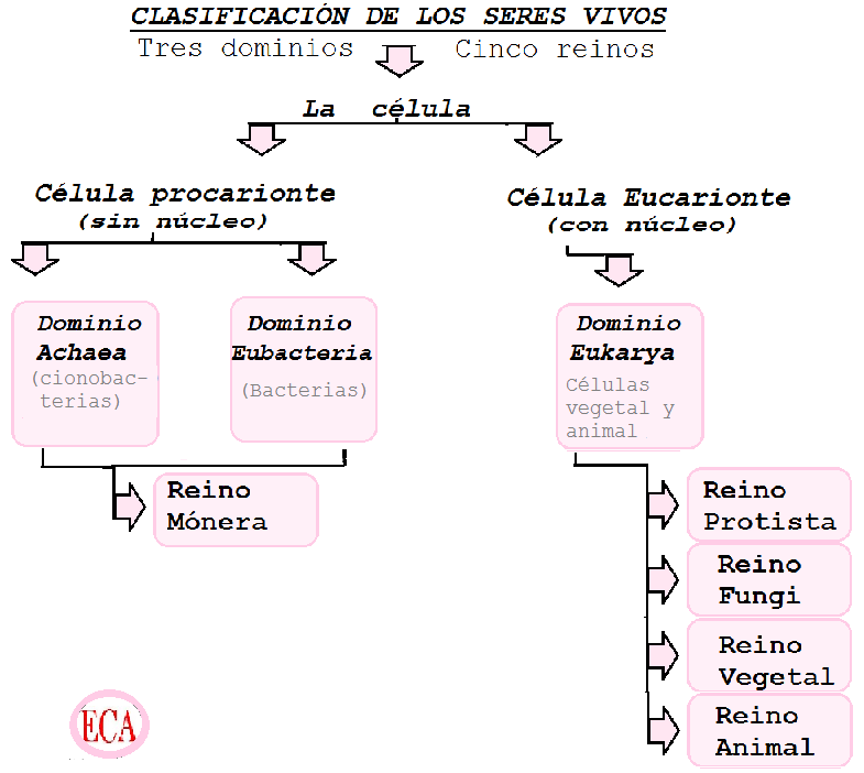 3.- Dominio Eukarya (célula eucariontes), que agrupa cuatro reinos: Protista,Fungi, Planta y Animal.